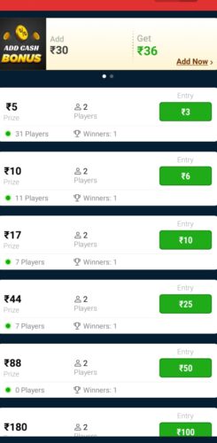 1. Entry fee for contests: The entry fee for paid contests starts at Rs. 1 onwards. However, the fee is different for every platform. You can also play free games, but the winning amount will be almost negligible.